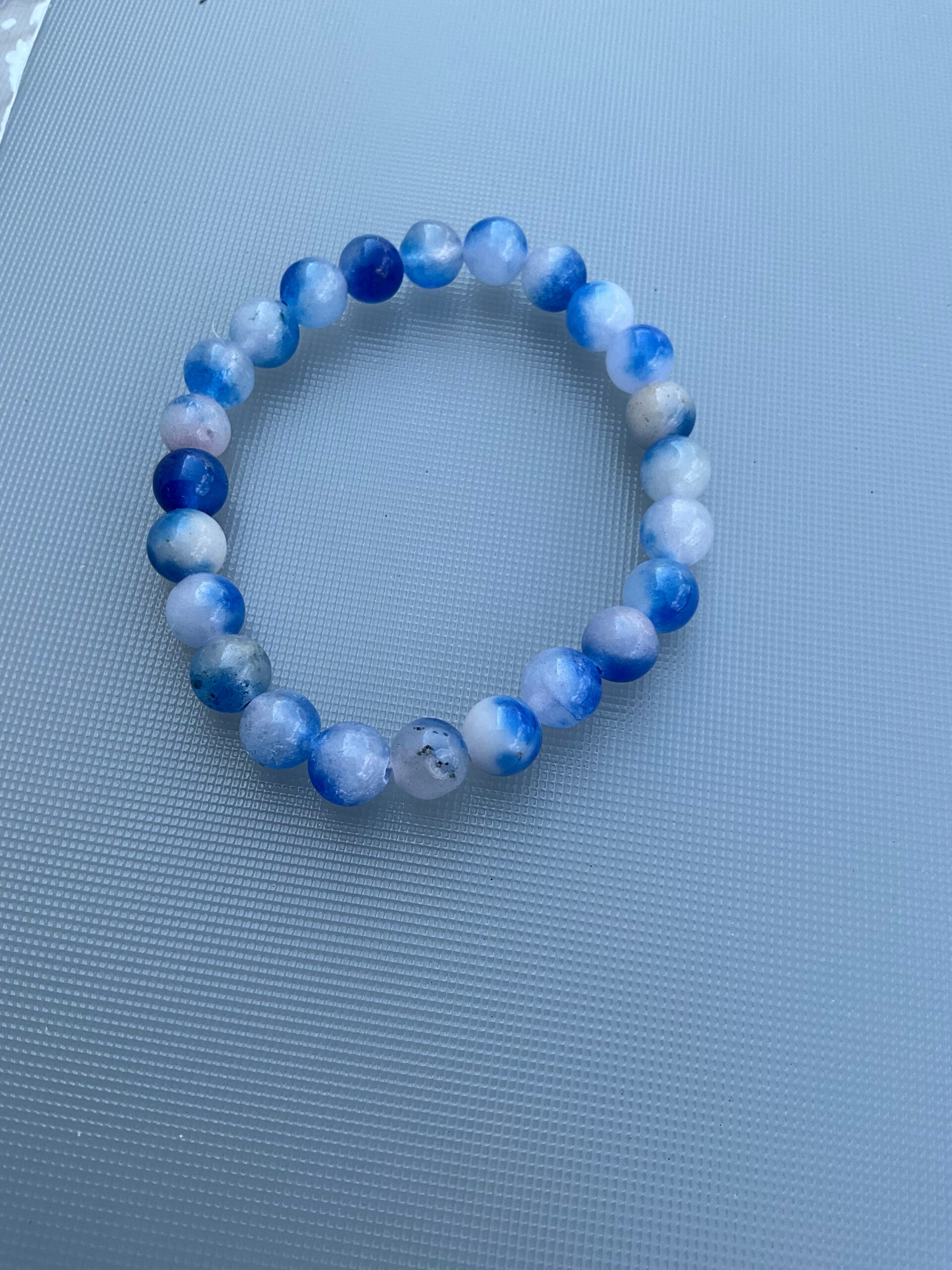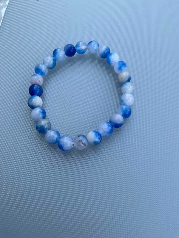 bracelet en pierre naturelle bleu/blanc/transparent